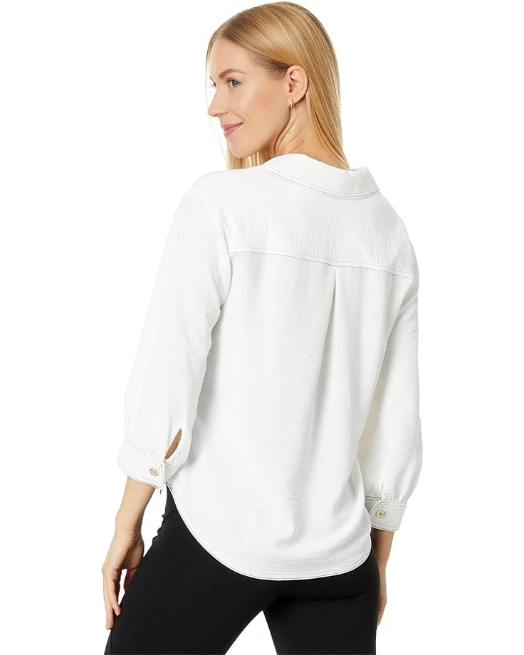 - Steal some admiring glances wherever you go donning the Tommy Hilfiger® Aero Split-Neck Popover. Woven in a slightly roomy fit, the top flaunts a split V-neckline and three-quarter puff sleeves with buttoned cuffs. It also displays a left chest patch pocket with a contrasting logo embroidery for an iconic touch. The contrasting stitching around neckline, pocket, cuffs, hem, and back yoke adds an extra element of flair to this top.
