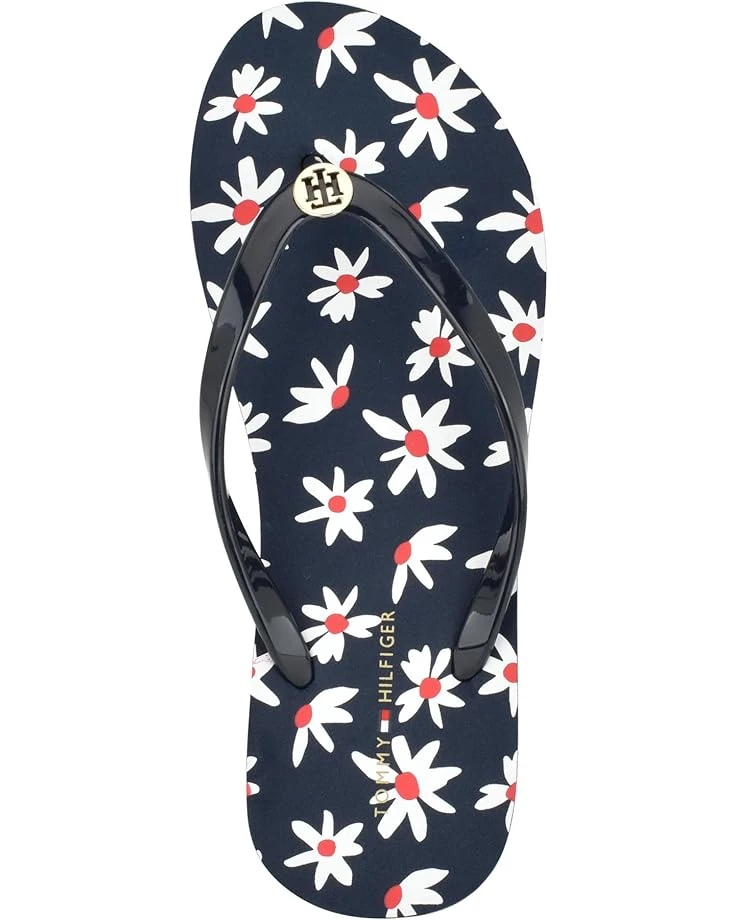 - Elevate your poolside glamor wearing the Tommy Hilfiger® Beila flip-flops. These fashionably comfortable slip-on style sandals feature thong-style man-made upper with open round toe.