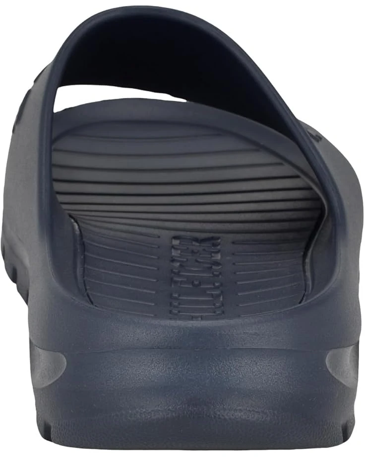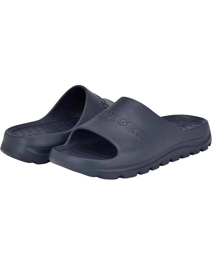 - Style a laid back look for a casual day out in these Tommy Hilfiger® Gager, a fashion forward, lightweight slide, with a slightly thicker and recessed sole. These slip-on open round toe silhouette flats have man-made upper, EVA insole and outsole.