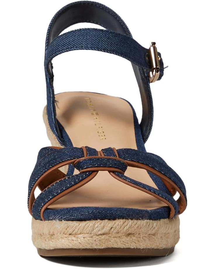 - Get ready for the dinner in a luxury restaurant wearing Tommy Hilfiger® Gazeiy sandals. It has open toe, strappy vamp with adjustable ankle strap and buckle closure. A faux leather upper, man-made lining, and foam footbed ensures comfortable movement. The jute midsole and wedge heel make it a feminine staple for warm weather.