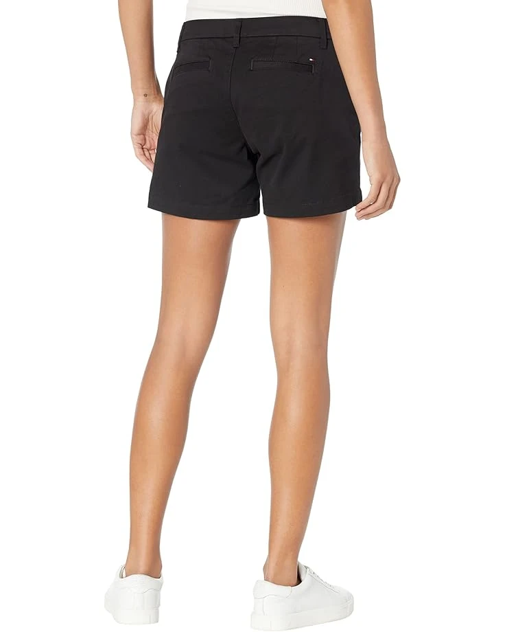 - Find your essential weekend vacation piece with the Tommy Hilfiger® Hollywood 5″ Chino Shorts. These stretch cotton-blend shorts are crafted with hidden hook closure with zip fly, slanted side pockets and two back welt pockets with embroidered signature flag logo at the right to add a preppy touch to your basic look.