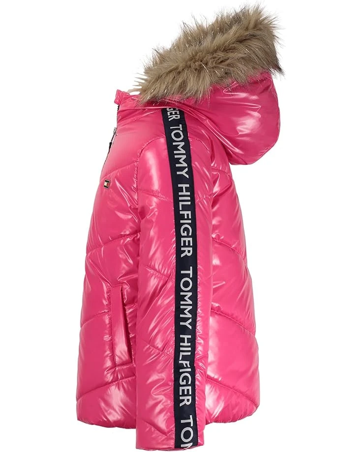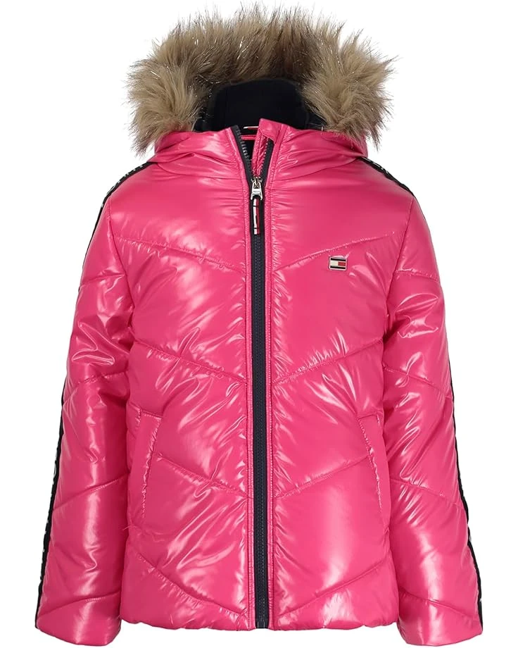 - Featuring a faux-fur lined hood, the Tommy Hilfiger® Kids Tommy Hilfiger® Chevron Puffer is the perfect outerwear to keep your kid warm and cold-protected. Super comfortable and stylish, this winter jacket locks in the warmth and keeps the weather out. The zippered front closure offers a snug fit while the brand logo strip on the sleeves speaks about its great quality. A must-have for your kid’s winter collection, this puffer jacket is designed to offer superior warmth and performance.