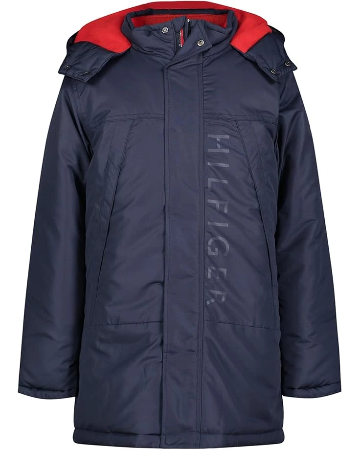 - Leave away your fear of chills while stepping out on a cold day by wearing Tommy Hilfiger® Kids Texture Block Snorkel jacket. The jacket has an attached hood with a snap button and center-front zipper closure. Long sleeves and handwarmer pockets add to the coziness.