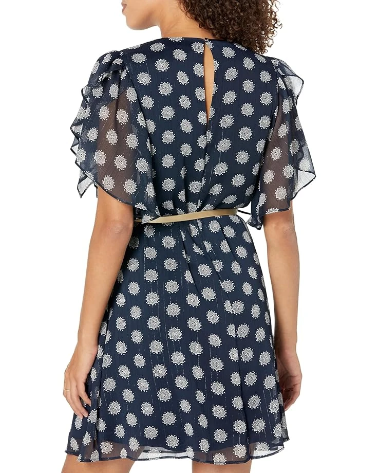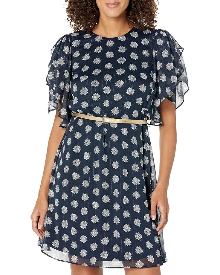 - Elevate your chic warm weather style in the Tommy Hilfiger® Medallion Print Chiffon with Lurex Dress. Featuring a round neckline, short flutter sleeves in a regular fit. Pair with your favorite sandals for an effortless look.