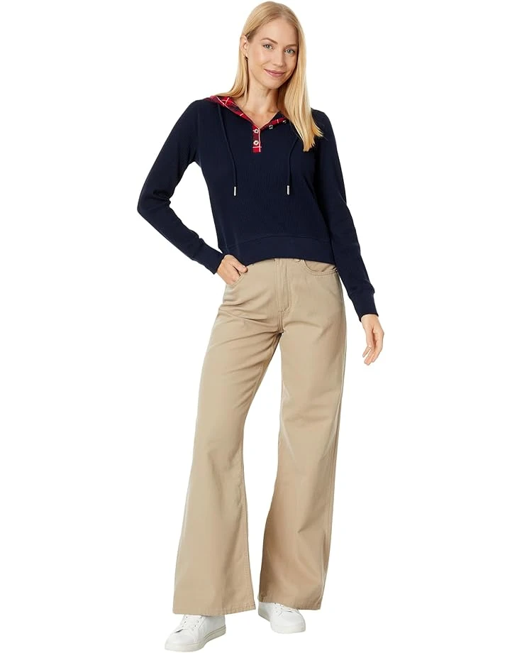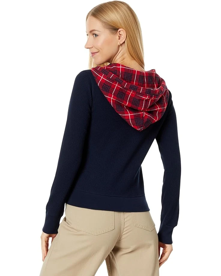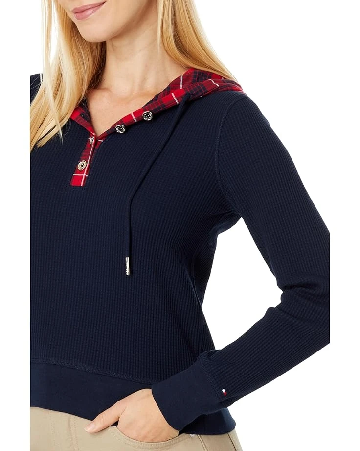 - If you have a brunch date lined up, then the Tommy Hilfiger® Mixed Media Waffle Hoodie would be an ideal pick for you. It has the quarter buttoned detailing in front with a drawstring attached to it and long sleeves with ribbed cuffs.