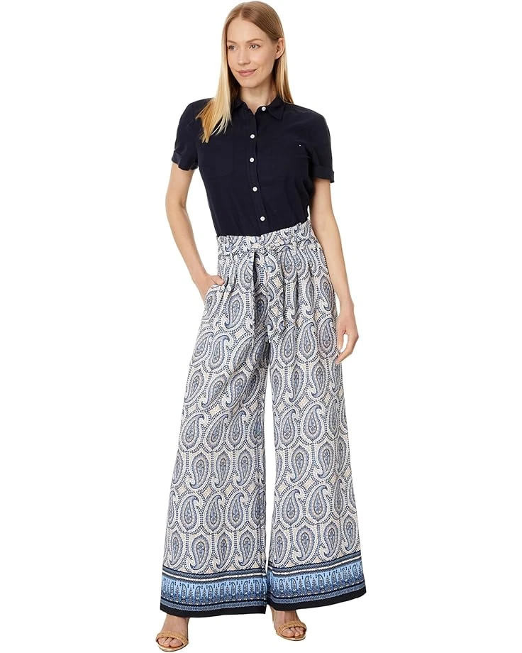 - Make your outdoor and indoor errands perfectly comfortable wearing the airy Tommy Hilfiger® Paisley Wide Leg Pants. The high-waist paperbag pants feature a belted waist with hook-and-bar closure.