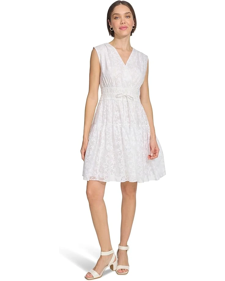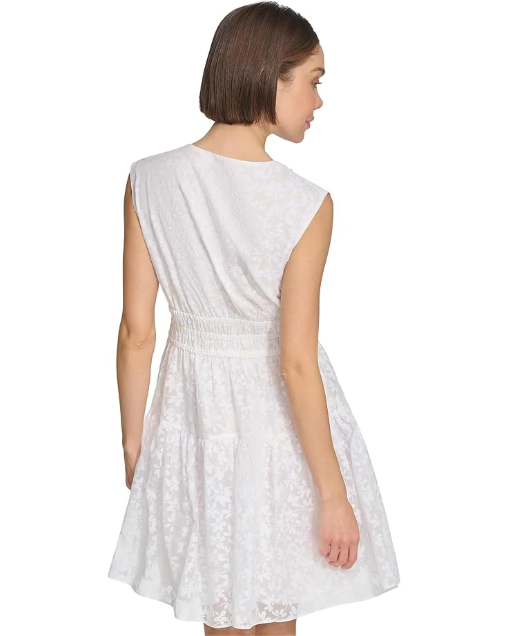 - Redefine casual style by adding a playful touch to your look, donning the Tommy Hilfiger® Petal Burnout Fit and Flare Dress. Crafted in a lightweight cotton fabric, the knee-length dress features a surplice neck, cap sleeves, elasticated waist with drawstring for adjustability, an allover monochrome pattern with petal burnout print, and fit-and-flare silhouette. .