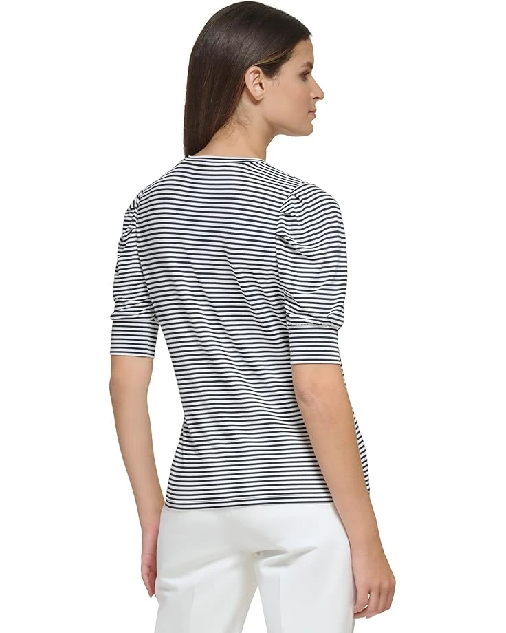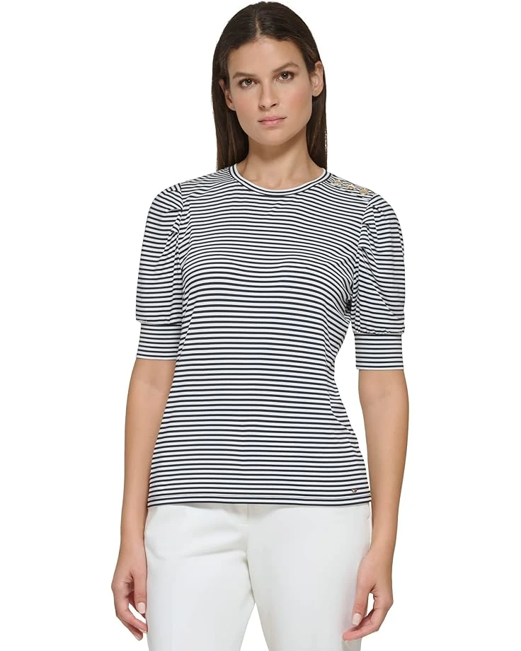 - Make a style statement in the comfy and cool Tommy Hilfiger® Puff Short Sleeve Sailor Top Stripe.