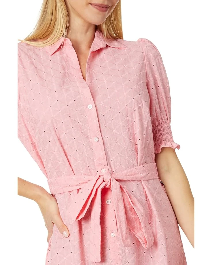 - Dress in a comfortable breezy look of this figure-flattering Tommy Hilfiger® Puff Sleeve Eyelet Midi Dress.