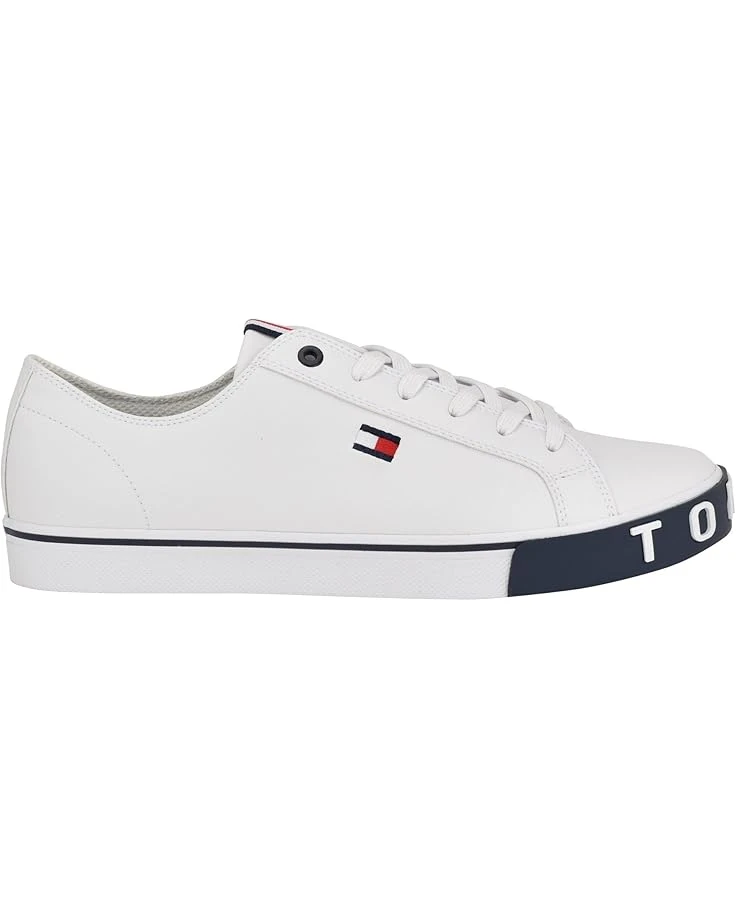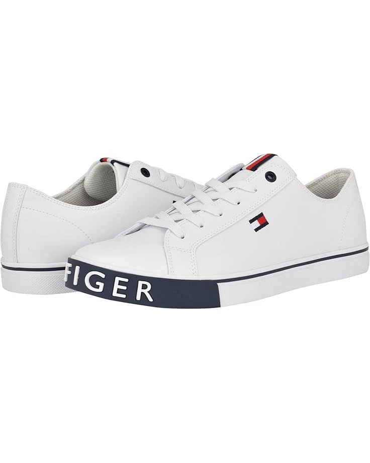 - Step out in style no matter the weather wearing the Tommy Hilfiger® Rain sneakers.The faux leather upper and textile lining make these sneakers a practical and stylish choice. You’ll stay comfortable all day with memory foam cushioned insole and padded tongue and collar. The global stripe detailing on the tongue adds a trendy touch to your outfit.