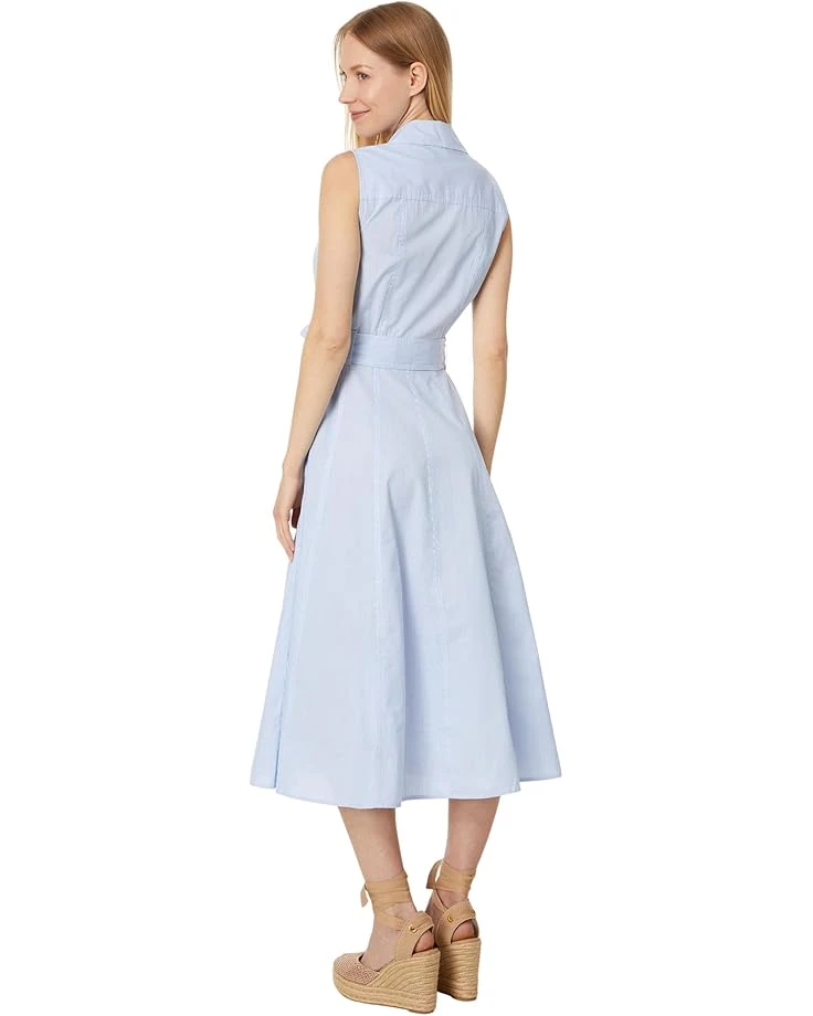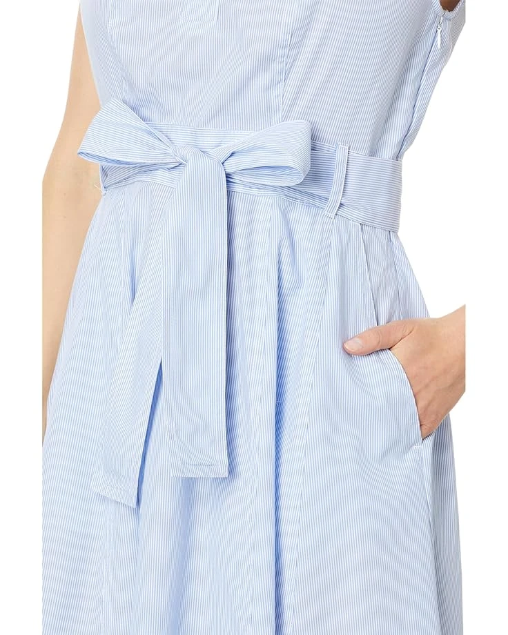 - Own timeless style adorning Tommy Hilfiger® Sleeveless Cornell Stripe Dress. Embrace modern style with its belted waist and collared neck, effortlessly enhancing your silhouette with an A-line cut that falls below the knee. Sleeveless comfort meets easy elegance with a pull-on closure, making it the perfect choice for any occasion.