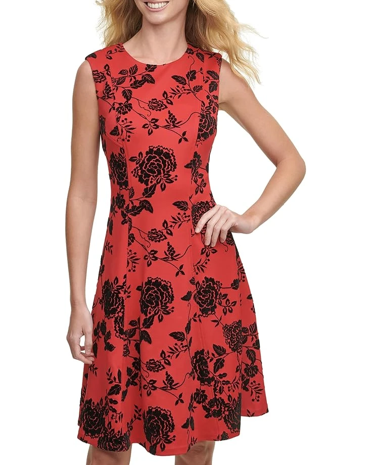 - Stay updated while stepping out casually by wearing Tommy Hilfiger® Sleeveless Scuba Fit-and-Flare dress.