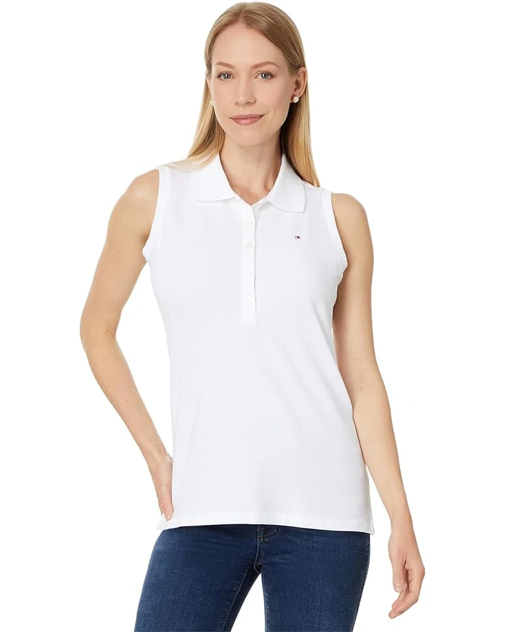 - Whether you’re getting ready for a sports event or a polo match, the Tommy Hilfiger® Sleeveless Solid Polo is a perfect choice. The sleeveless style, collared neckline, and straight hem offer added comfort and style. This polo shirt comes with a buttoned front closure that ensures easy wear. Crafted from cotton and elastane blend, this polo serves as a comfortable choice. Match your comfort and style wearing this collared polo shirt.