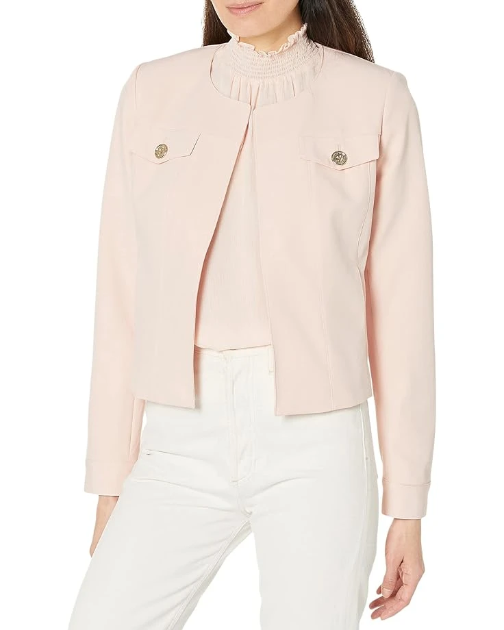 - Layer up in elegant style wearing the Tommy Hilfiger® Solid Open Jacket.