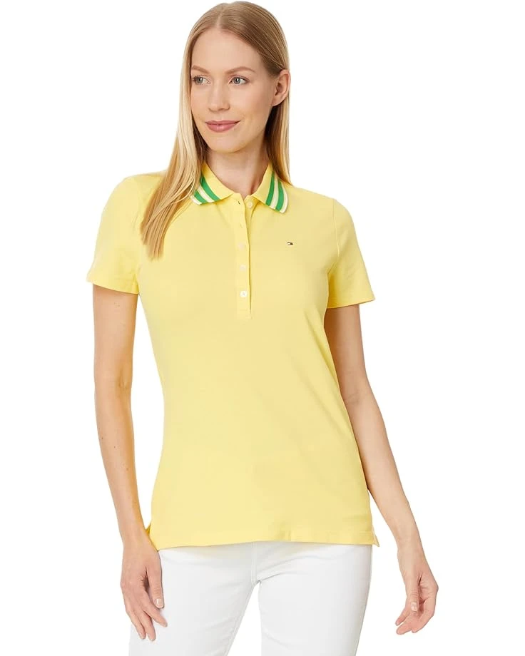 - Spend your next day on the court in absolute style and comfort wearing Tommy Hilfiger® Solid Polo With Tipping. The polo comes with a regular fit, contrast striped collar, a quarter-button placket, short sleeves, embroidered flag logo at the chest, and a straight hem.