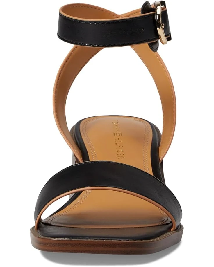 - Step into chic sophistication with the Tommy Hilfiger® Tafita Heeled Sandal. These sandals feature stacked block heels that combine style and comfort. The wide ankle strap with an adjustable buckle closure offers a secure fit. With an open square toe silhouette, these sandals are a perfect blend of contemporary design and timeless charm.